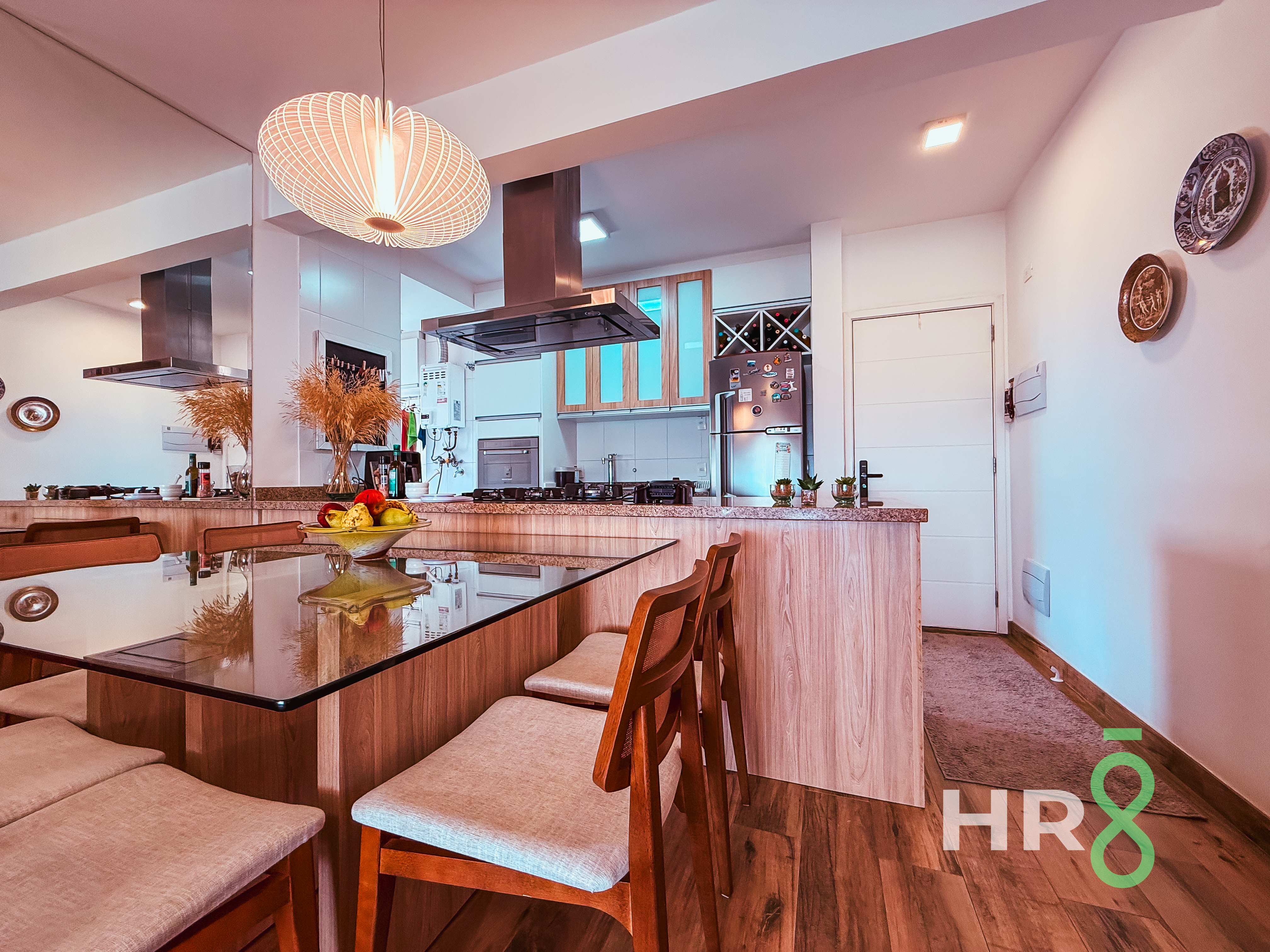 Funcional e charmosa, promove praticidade e convivência no dia a dia, conectando-se de forma fluida à sala de jantar e estar.